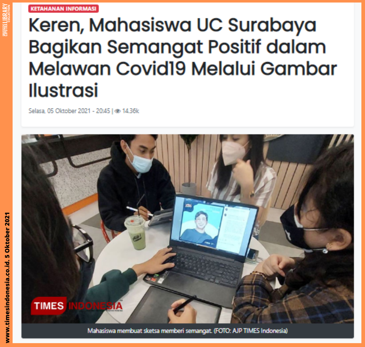 Keren, Mahasiswa UC Surabaya Bagikan Semangat Positif dalam Melawan Covid19 Melalui Gambar Ilustrasi. www.timesindonesia.co.id. 5 Oktober 2021. VCD