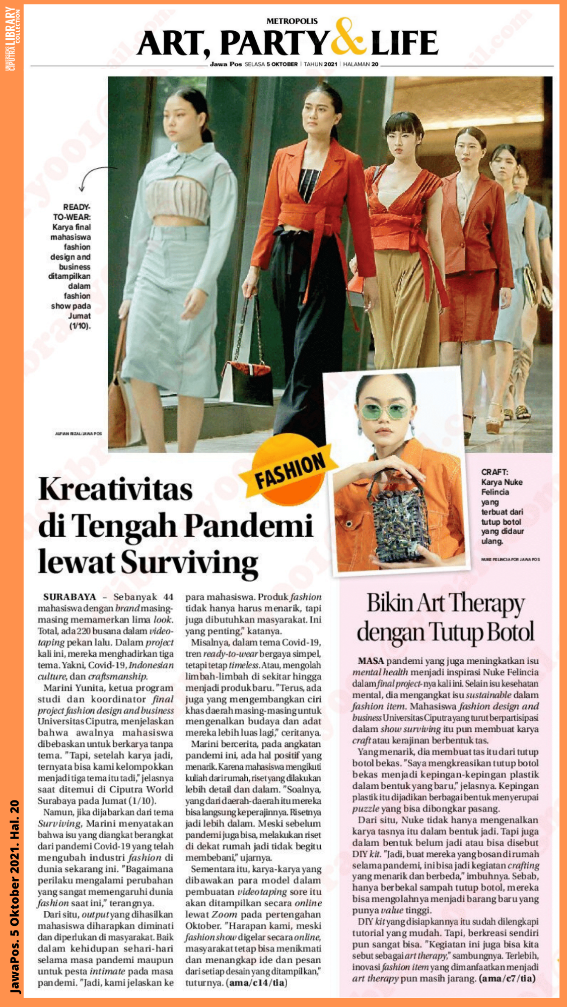 Read More…Peringati Hari Batik, UC Surabaya Jaga Citra Batik Artisan Tuban dengan Konsep Sustainable Fashion. www.timesindonesia.co.id. 1 Oktober 2021. VCD