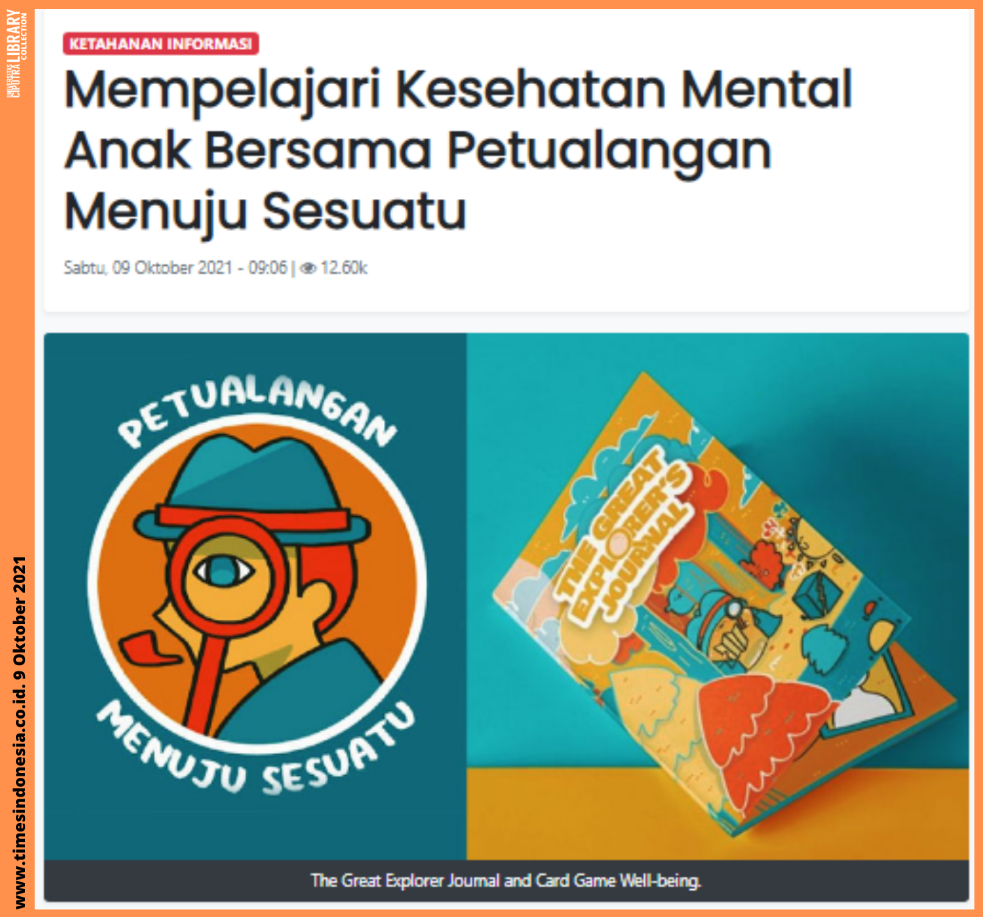 Read More…Mempelajari Kesehatan Mental Anak Bersama Petualangan Menuju Sesuatu. www.timesindonesia.co.id. 9 Oktober 2021. Samantha Teonata, Livia Angelica. Alumni VCD